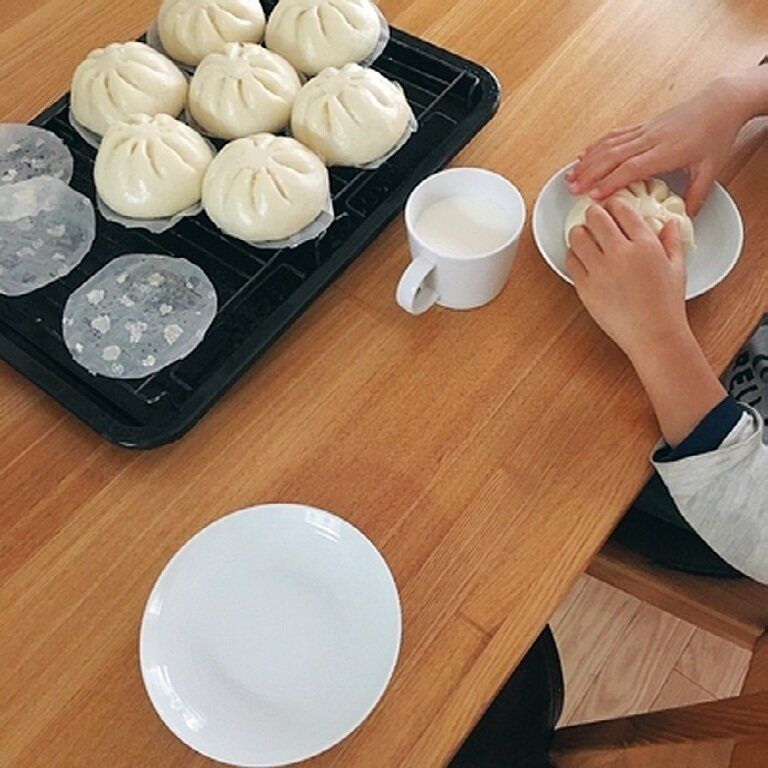 「毎食、しっかりした献立を出そう」という気持ちは手放して、3食で栄養がとれればOKと割り切り。朝食は「肉まんと牛乳」、「パンと牛乳」などいくつかパターン化。簡単だから家族も自分で用意してくれます。