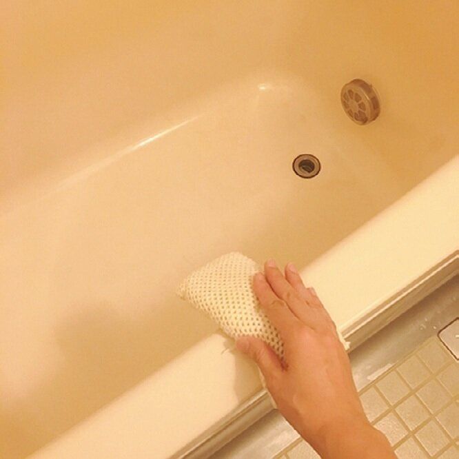 わが家は、その日最後に入った人が浴槽を洗うルール。浴室の温度が高いうちにアクリルスポンジでこすれば、お湯で流すだけで汚れはするする落ちます。