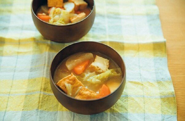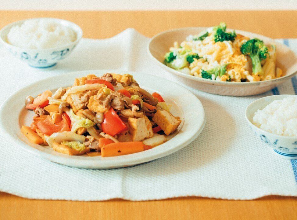一汁三菜は理想かもしれないけれど、毎日は無理! だから、「具だくさんでボリュームがあれば2品でよし、としています。その代わり副菜にも卵やハムを入れてメイン並みに。汁も副菜として1品にカウントします」。
