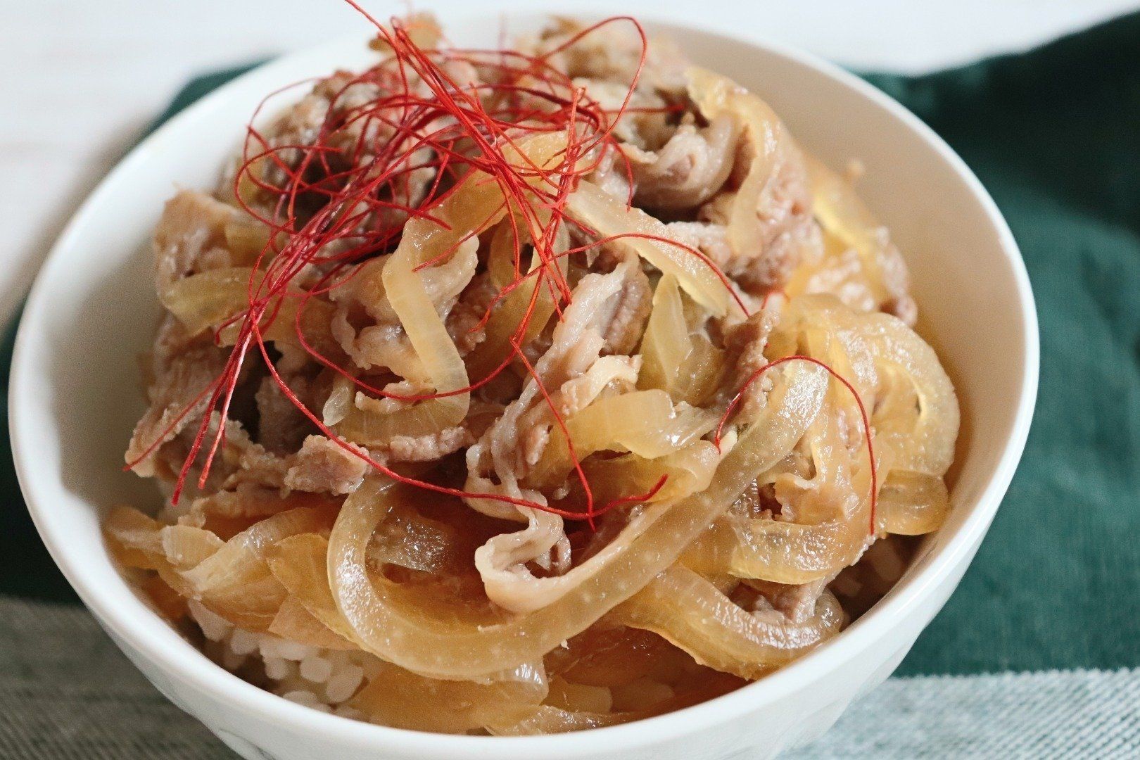 いそがしいときのお助けメニューといえば、ごはんの上に具材をのせるだけで完成する丼ものです。Minさんのこの日のメニューは、牛切り落とし肉と玉ねぎ、めんつゆとみりんをレンジでチンしたお手軽牛丼。調理時間が短くて、洗いものの手間いらず!加熱が終わるまでの間に、ほかの家事ができるのも便利ですね。