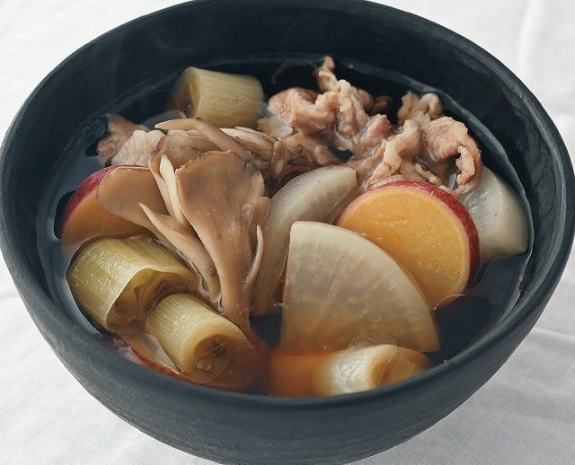 大根、ねぎ、さつまいも、まいたけ、豚肉などを好きな大きさにカットして、油やバターで炒めます。あとは簡単、だし汁や調味料で煮るだけ!残りものの野菜があるときなどに大活躍の一品です。