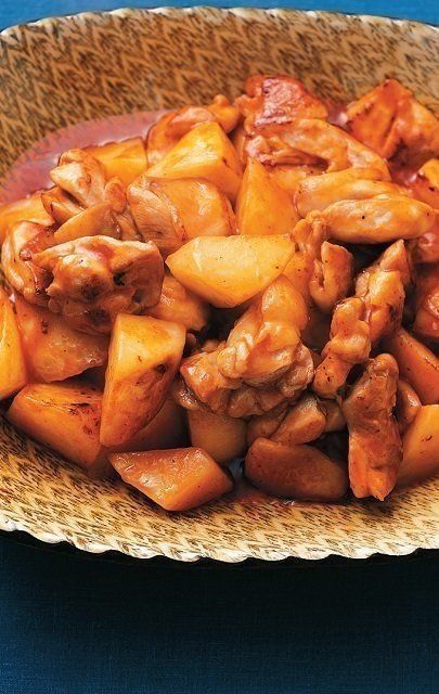 ひと口サイズの鶏もも肉と、乱切りにした大根をサラダ油で炒めます。味つけはケチャップ、お酢、片栗粉などで。甘酸っぱさがたまらない!大人も子どもも大好きな一品です。