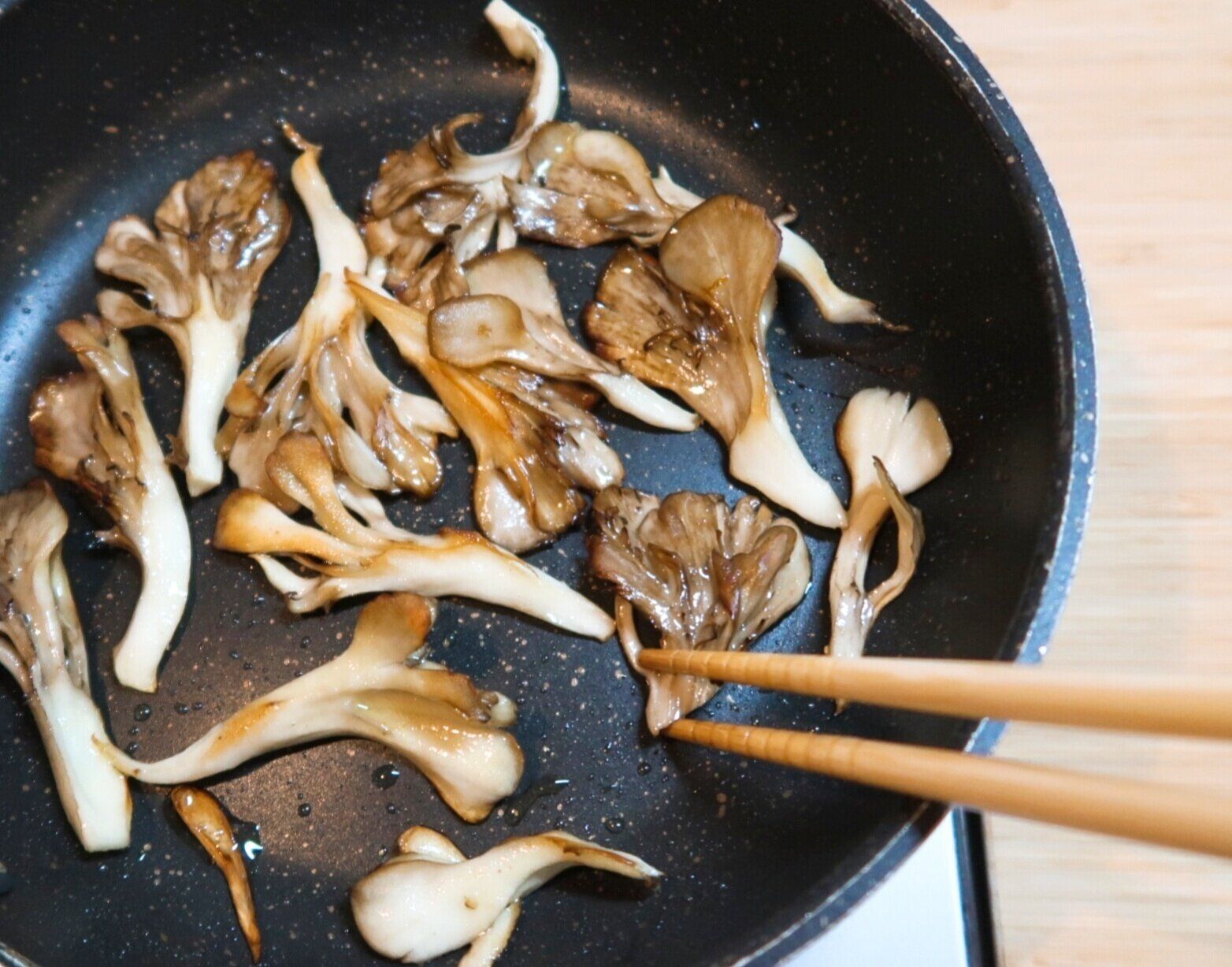 しっかりと焼き色をつけると、きのこの風味をより感じられるのでおすすめです!塩(またはハーブソルト)でかるく味をつけお皿に取り出します。