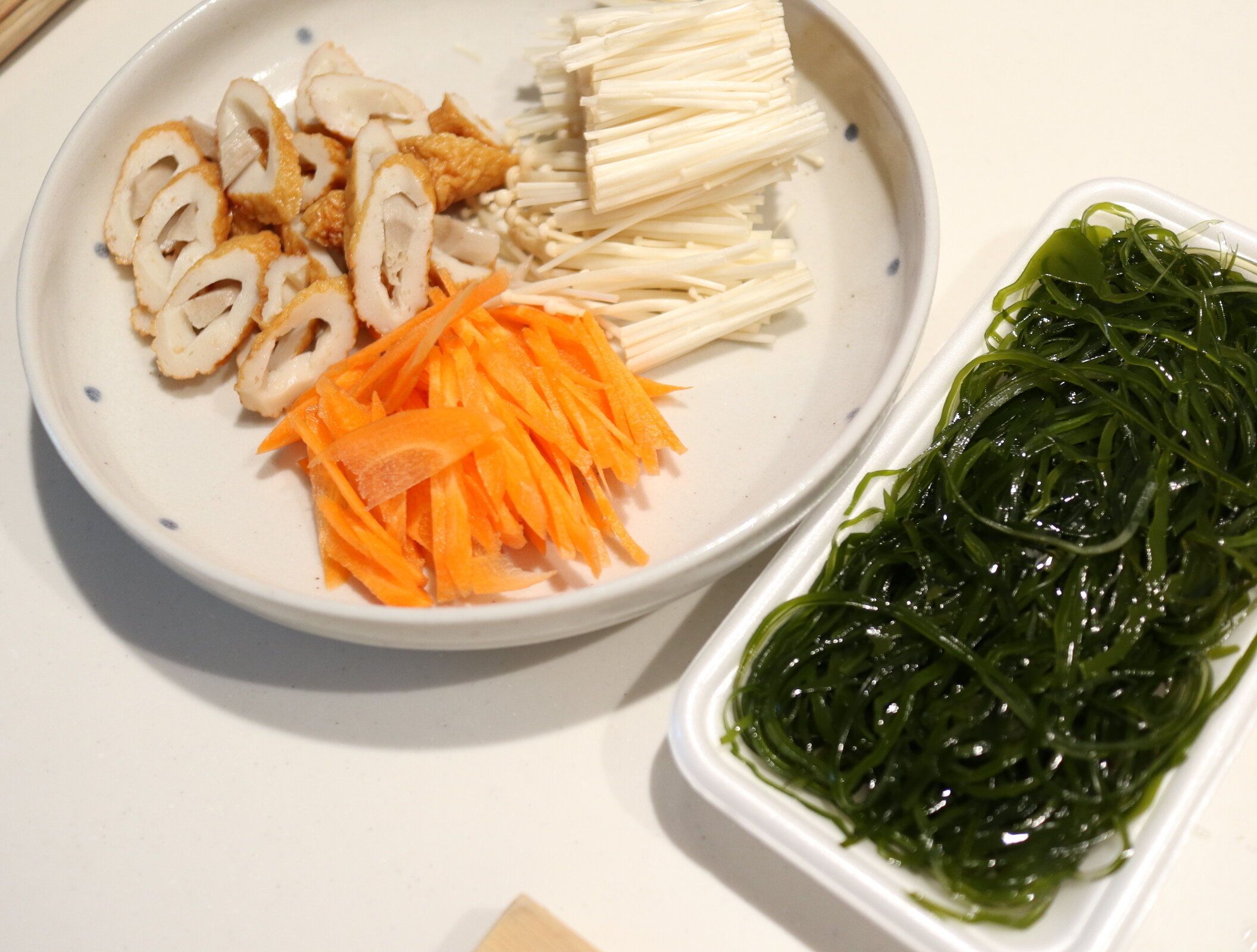 1.フライパンにごま油を熱し、にんじん→えのき→ちくわ→切り昆布の順に炒める。