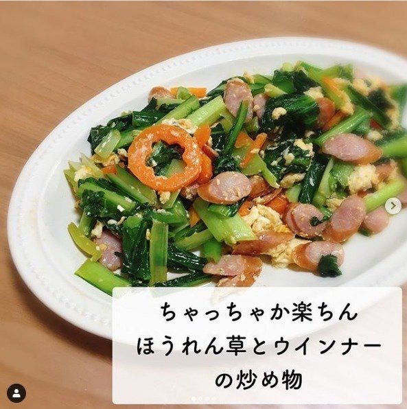 副菜もさっと炒めるだけのラクラク炒め物がオススメ!ほうれん草と卵で彩りもきれいなので、多めにつくってお弁当の一品にしてもとっても便利です。時短なのでもちろんフライパンひとつでつくれちゃいます。