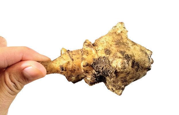 写真は、やや大きめサイズのもの。見た目は、しょうがに近いかも……。こんな見た目をしていますが、軽く皮をこすり洗いして皮付きのまま生で食べることができるのです!