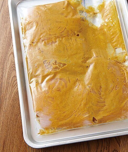 漬けて5分おくだけでよい。長く漬けてもおいしいので、朝漬けておいたものを夜焼いたり、前の日に漬けてもよい。