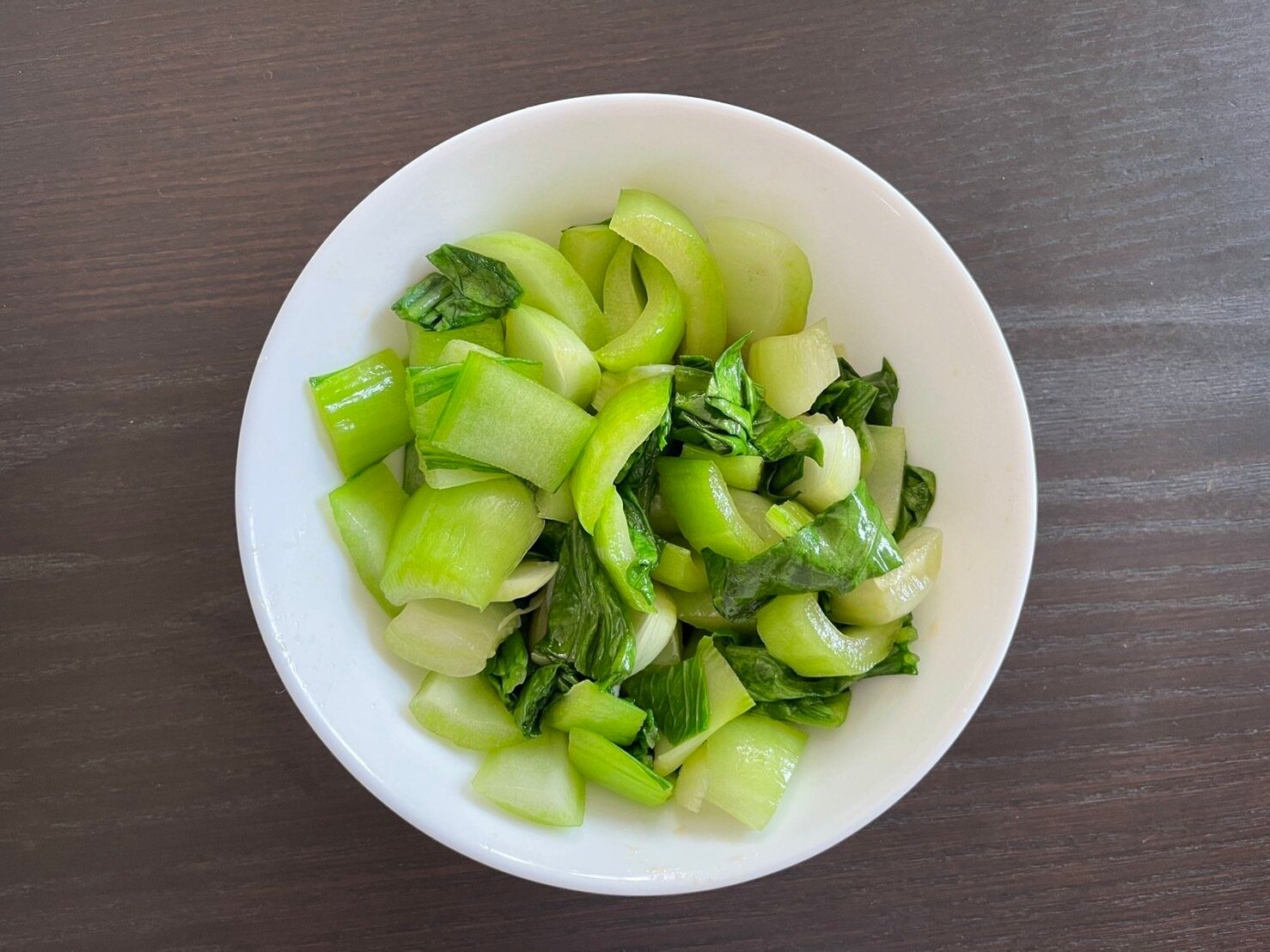 油を入れて茹でたチンゲン菜はそのままでも、アレンジしてもおいしくいただけるひと品。