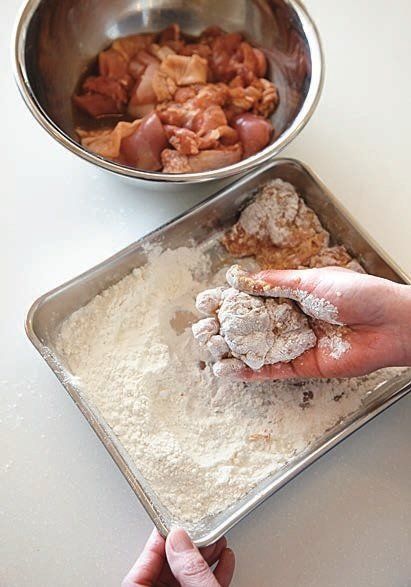 鶏肉は、薄力粉と片栗粉を混ぜたころもをつけるとカリッと揚がる!
