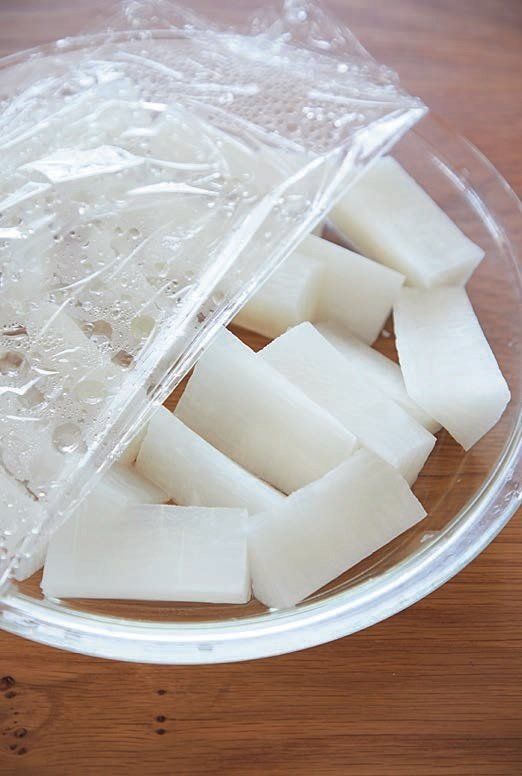 (1)大根を電子レンジで加熱する