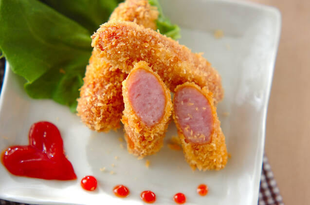 切り口からのぞくピンク色がかわいらしい、ウインナーフライのレシピ。ウインナーのうま味・衣のサクサク感・粉チーズの風味のハーモニーは、ヤミツキになるおいしさ!味つけ不要なので、お弁当のおかずに最適な一品です。