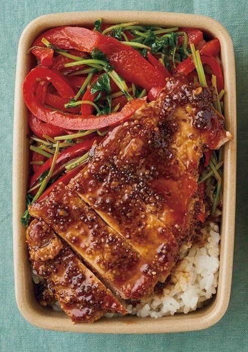 ジューシーな鶏肉をご飯にオン!ケチャップベースのBBQタレは、ご飯との相性バッチリ。調味料といっしょに電子レンジで加熱できる簡単さもGOOD。副菜のじゃがいもといんげんもいっしょにレンチンすることで時短できますよ。