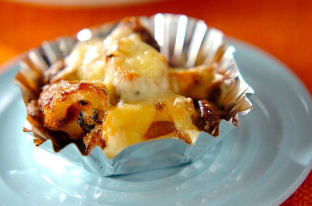 ちくわとカニカマをアルミカップに入れ、そのままお弁当のおかずにできる便利なレシピ。トースターで焼くだけ、調理時間5分ほどで完成するので、あと一品欲しいときにも活躍しそうですね。