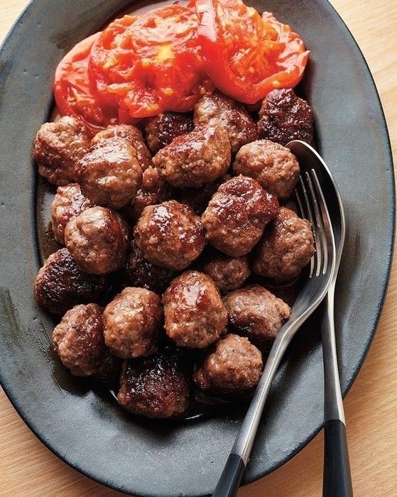 ミートボールの焼きトマト添え
