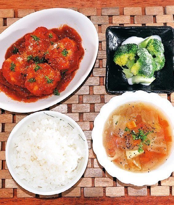 ふわふわ卵と相性ばっちりのトマトのスープ。大きめの鍋で湯を沸かし、煮立ったら割りほぐした卵、トマトを入れるだけ。いそがしい日でも、メイン料理といっしょにつくれる簡単さです。