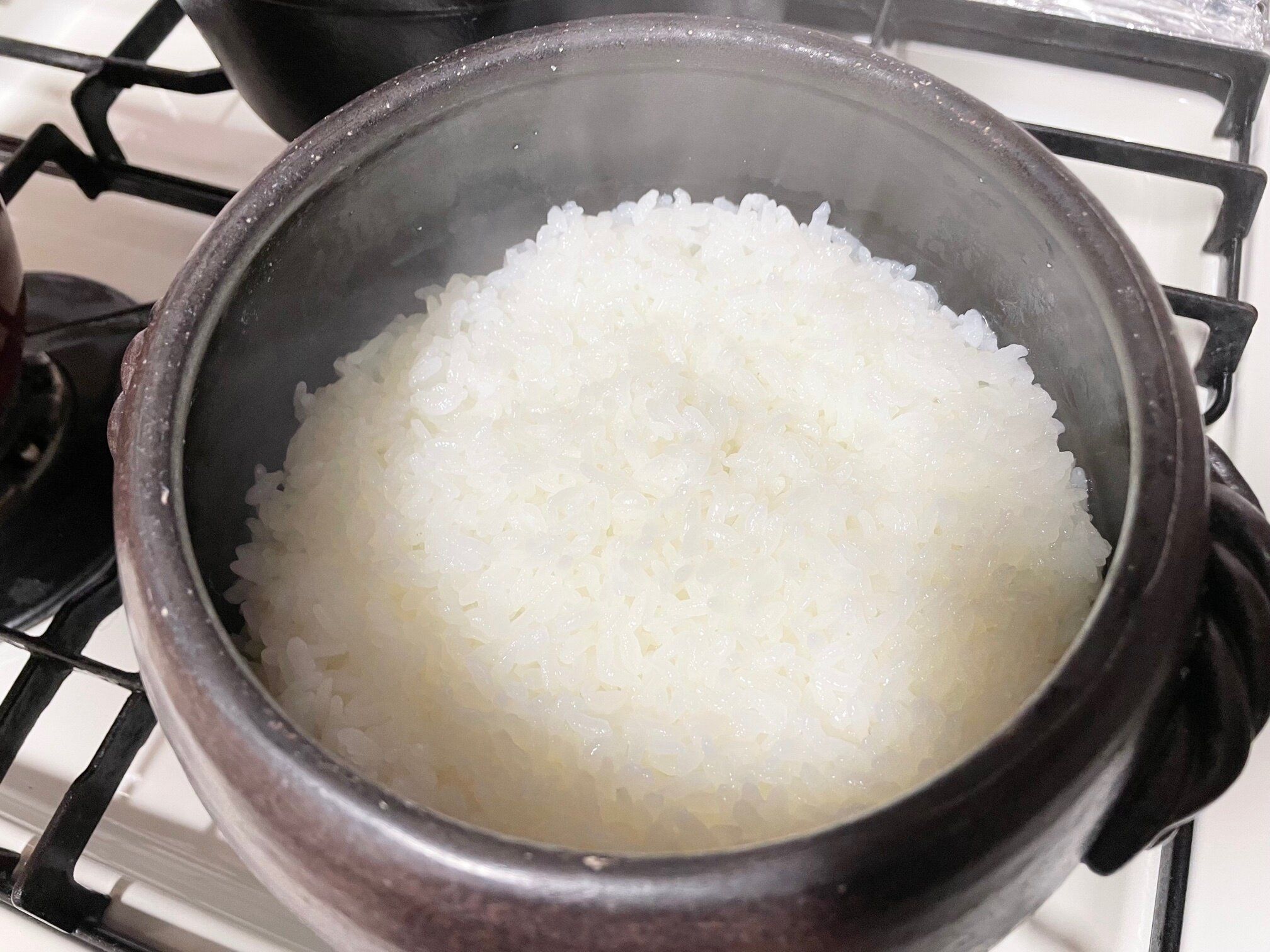 ちなみに、4合以上炊くときや別の土鍋で炊くときは、だいたい弱火で10分蒸らし10分で炊いています。