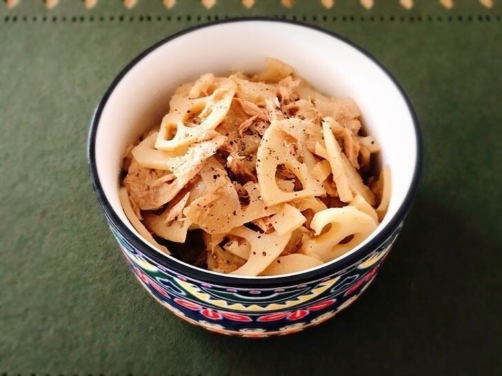 スライスしたれんこんと調味料を一緒にレンジで加熱するだけで、味はしみしみ、食感はシャキシャキに。おはしが止まらなくなるおいいしさです。