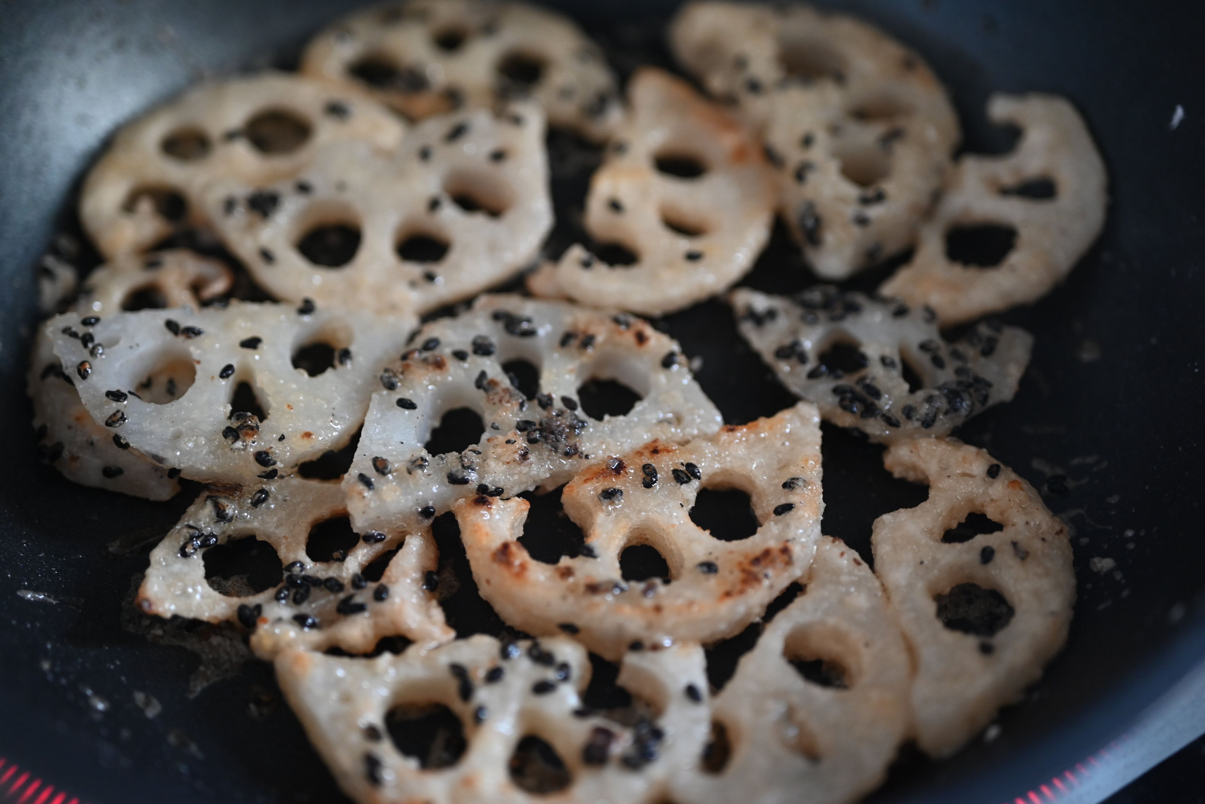 黒ごまがポイント!れんこんの黒ごま揚げ焼き