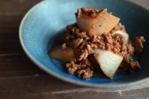 (3)醤油とみりんを加え、汁気がなくなるまで加熱して完成。
