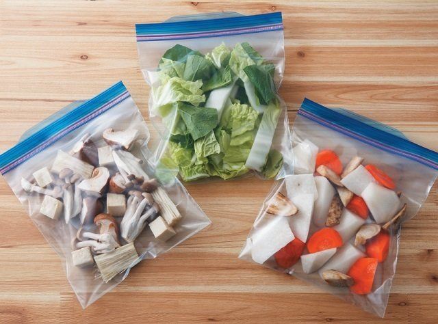残った野菜やきのこは、冷凍用保存袋に入れて「自家製冷凍ミックス野菜」にしちゃいましょう!ちょっとずつ切り貯めておけば、みそ汁や煮ものにさっと使えて、忙しいとき大助かり。