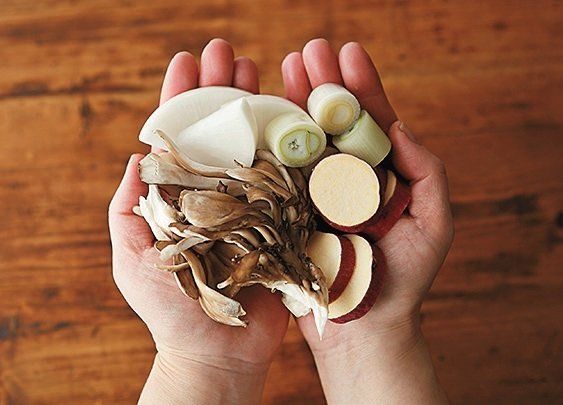 ・手のひら4杯分の野菜……(ねぎ、大根、さつまいも、まいたけなど)