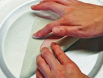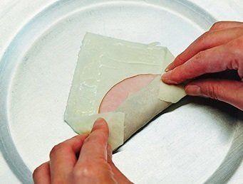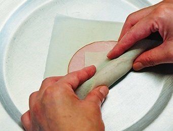 3.小麦粉のり(小麦粉1:水1)を角の2辺に塗る。