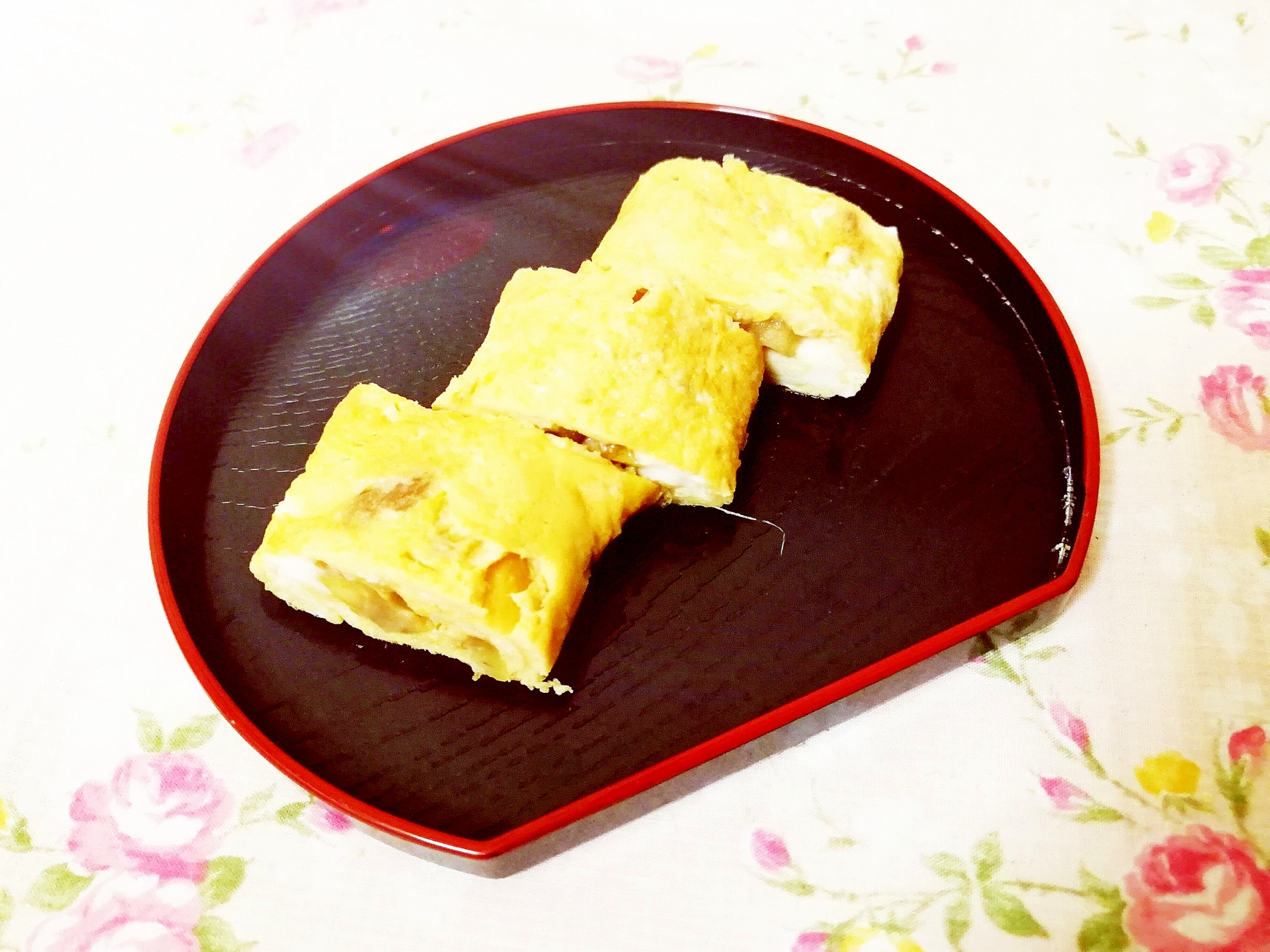 栗を適当な大きさに刻んで混ぜ合わせた、卵焼きのレシピです。おろし生姜を入れることで、ほどよい味のアクセントになります。しょうゆでコクを与えるのも、おいしくつくるコツです。