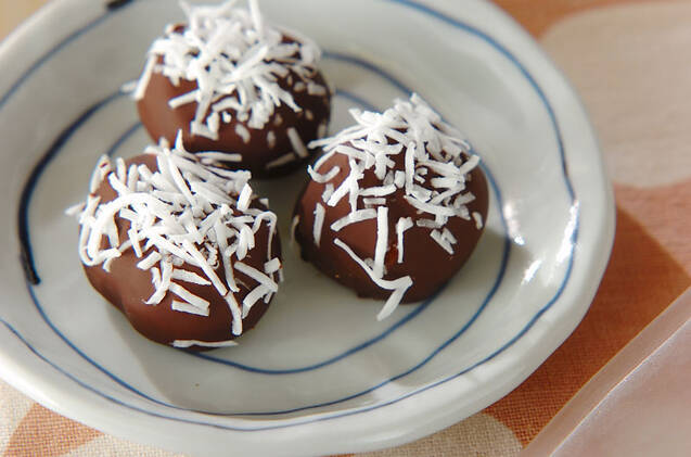 栗とチョコレートを使用した洋菓子レシピ。栗の甘露煮と、ほろ苦いビターチョコがよく合います。最後にココナッツロングをトッピングすれば、よいアクセントになりますよ。