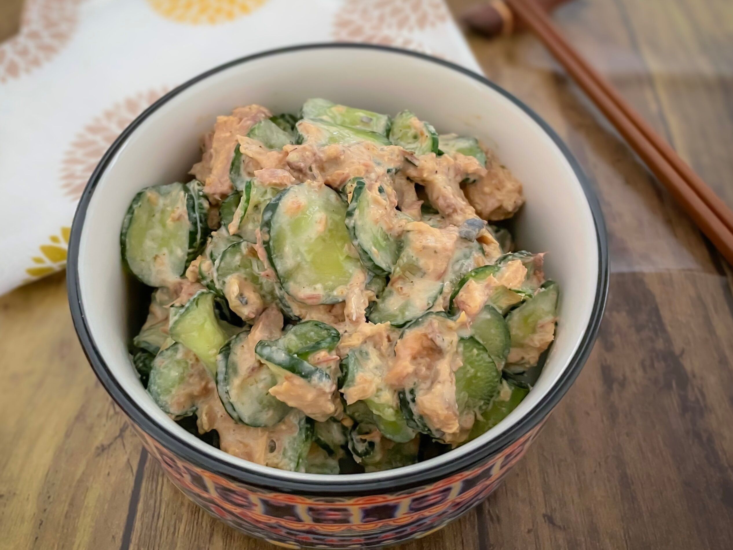 きゅうりとさば缶(みそ煮)の簡単和えもの。