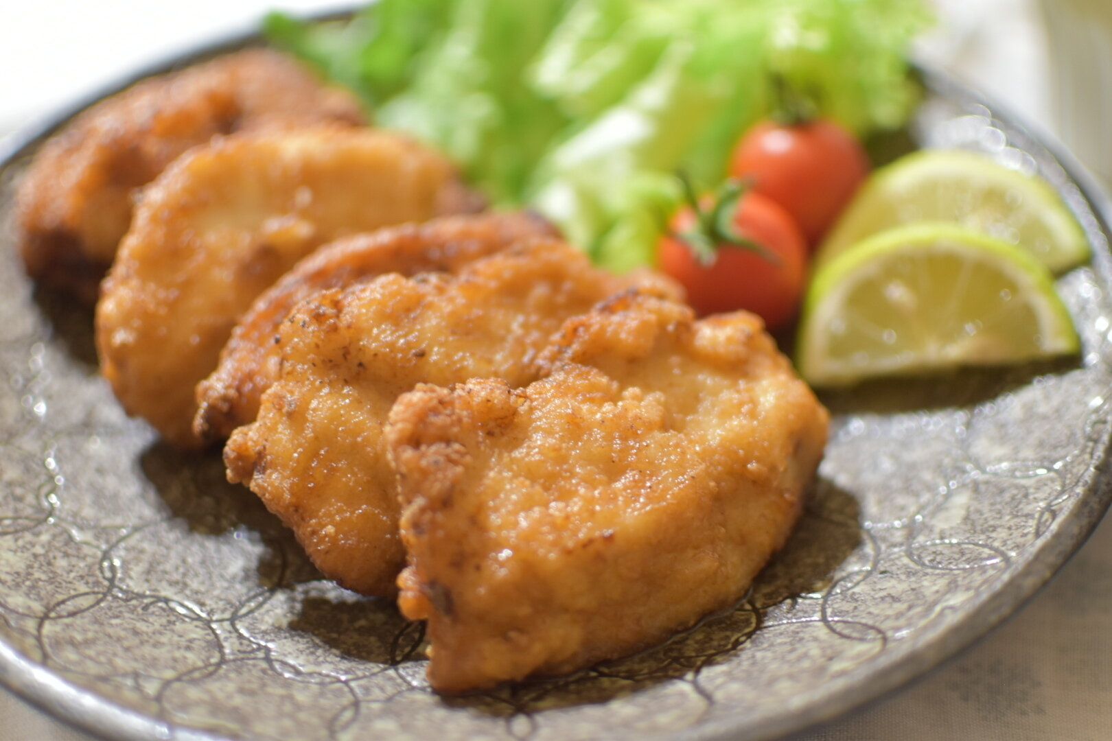 筋取りに失敗してボロボロになってしまった“ささみ”でつくることもありますが、今回は鶏むね肉でつくっています。