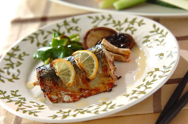 お魚の洋食メインメニューにおすすめの、サバの香りオーブン焼き。サバに下味をつけてふっくらと焼き上げます。半月切りのレモンをのせて華やかに!おしゃれなプレートに盛りつけておもてなしするのも素敵です。