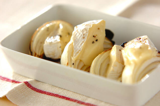 玉ネギとカマンベールチーズの相性を楽しめる一品。じっくりと火を通した玉ねぎの甘みと、とろ~りチーズのコク、香りを堪能できそうです。洋食の副菜や、おつまみメニューにいかがでしょうか。