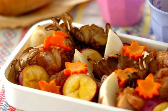 彩り鮮やかな、チキンと秋野菜のオーブン焼きのレシピです。にんじんを好みの型で抜いて、アレンジするのも素敵ですね。お子さまにも喜ばれそうなメニューです。