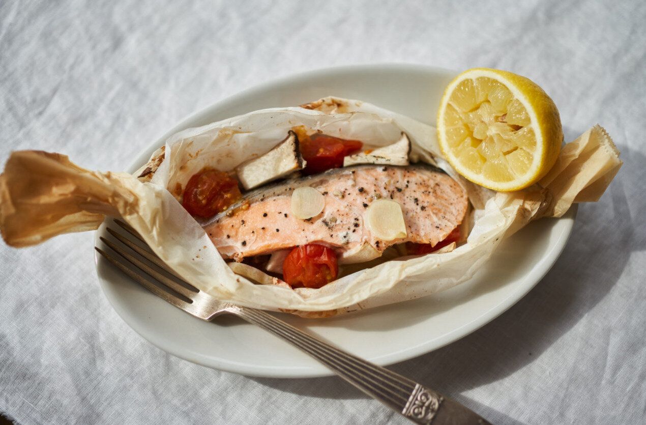 魚と野菜をいっしょにとれる、白身魚とトマトのオーブン焼きのレシピ。味つけはシンプルなのに、素材のうま味をたっぷり感じられる一品です。白身魚はふわふわ、野菜はホクホクの仕上がりに。野菜は冷蔵庫にあるものでOKです。