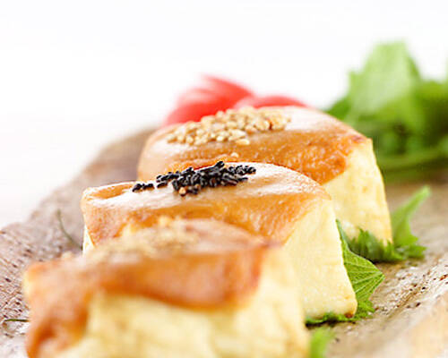 ふんわり&とろとろっとしたおいしさに癒されそうな、厚揚げの卵焼き。しょうゆやマヨネーズなどを使った「合わせだれ」をかけていただきます。焼き時間によって、また違ったおいしさを楽しめそうですね。