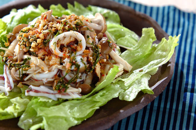 イカとキノコの薬味ダレ
