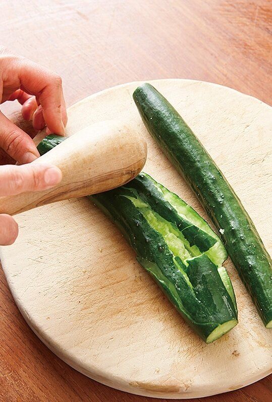 わかめはさっと洗い、かぶるくらいの水に3分浸す。グリーンリーフは手でちぎり、器に盛りつける。きゅうりはすりこ木などで粗くたたき、食べやすい大きさに切り、器に盛る。わかめの水けをきり、食べやすい長さに切って盛りつける。