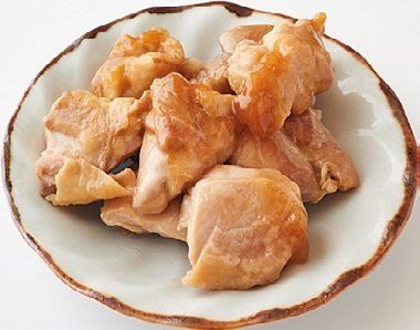一口大に切った鶏もも肉を両面各4分焼き、上の調味料と片栗粉小さじ1/3、水大さじ1を入れてからめる。