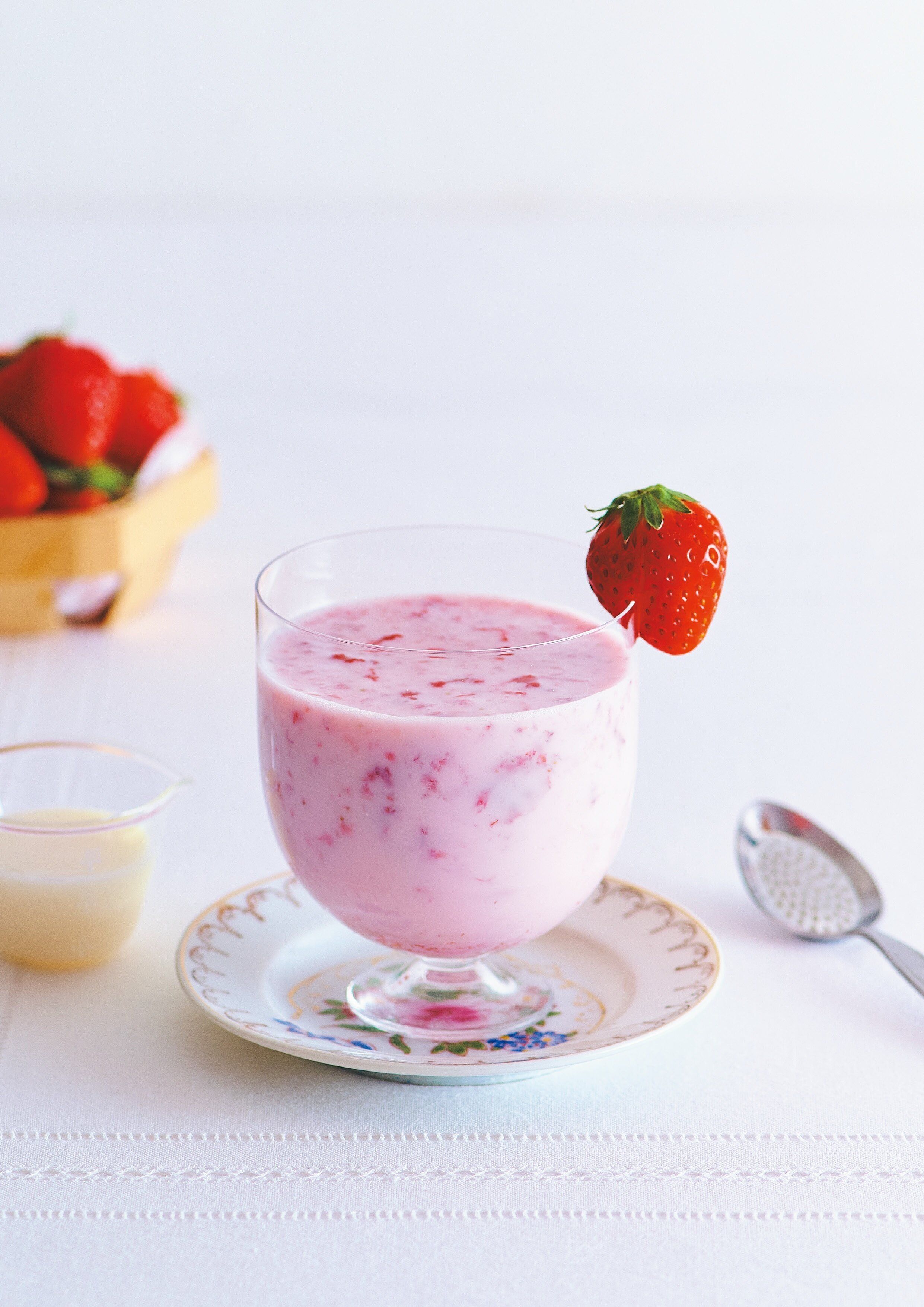 (1) いちごはグラスに入れてフォークでピューレ状になるまで潰す。 (2)牛乳、練乳を注ぎ、全体をよく混ぜる。 ※グラスの縁にいちごを飾っても(分量外)
