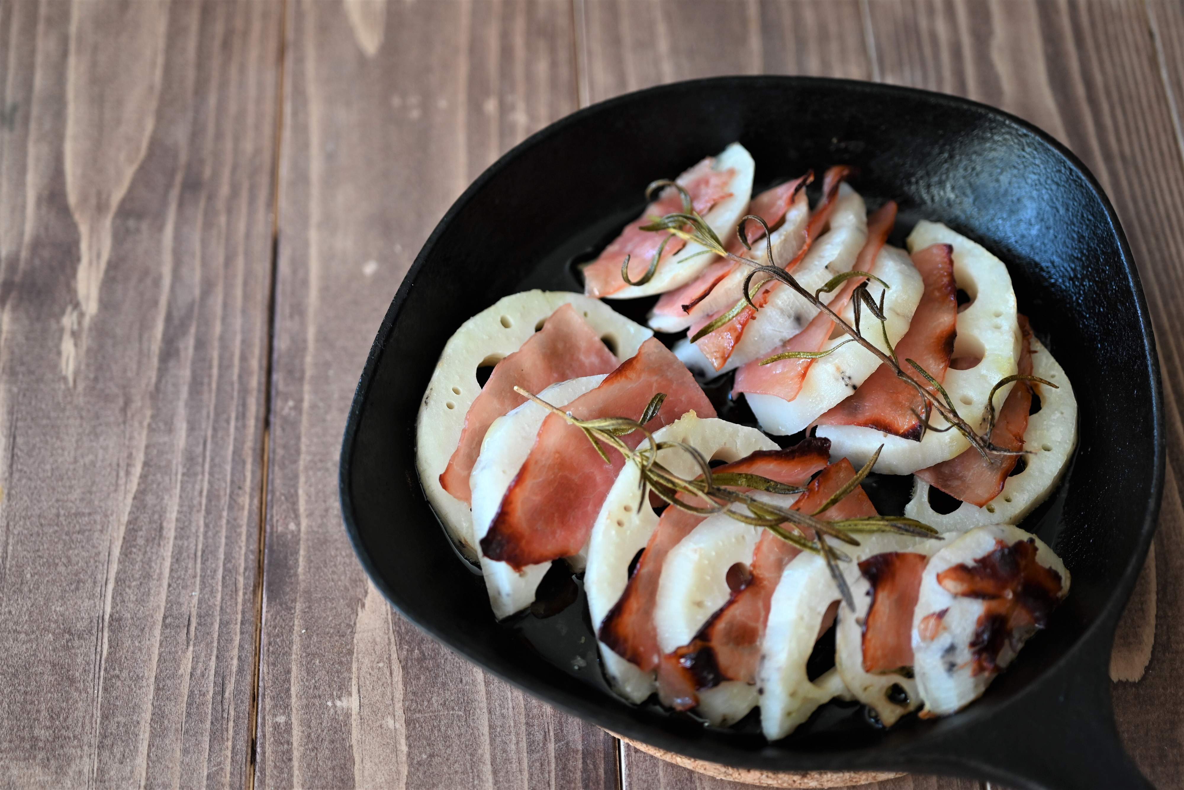 並べて焼くだけ!れんこんと生ハムのミルフィール焼き