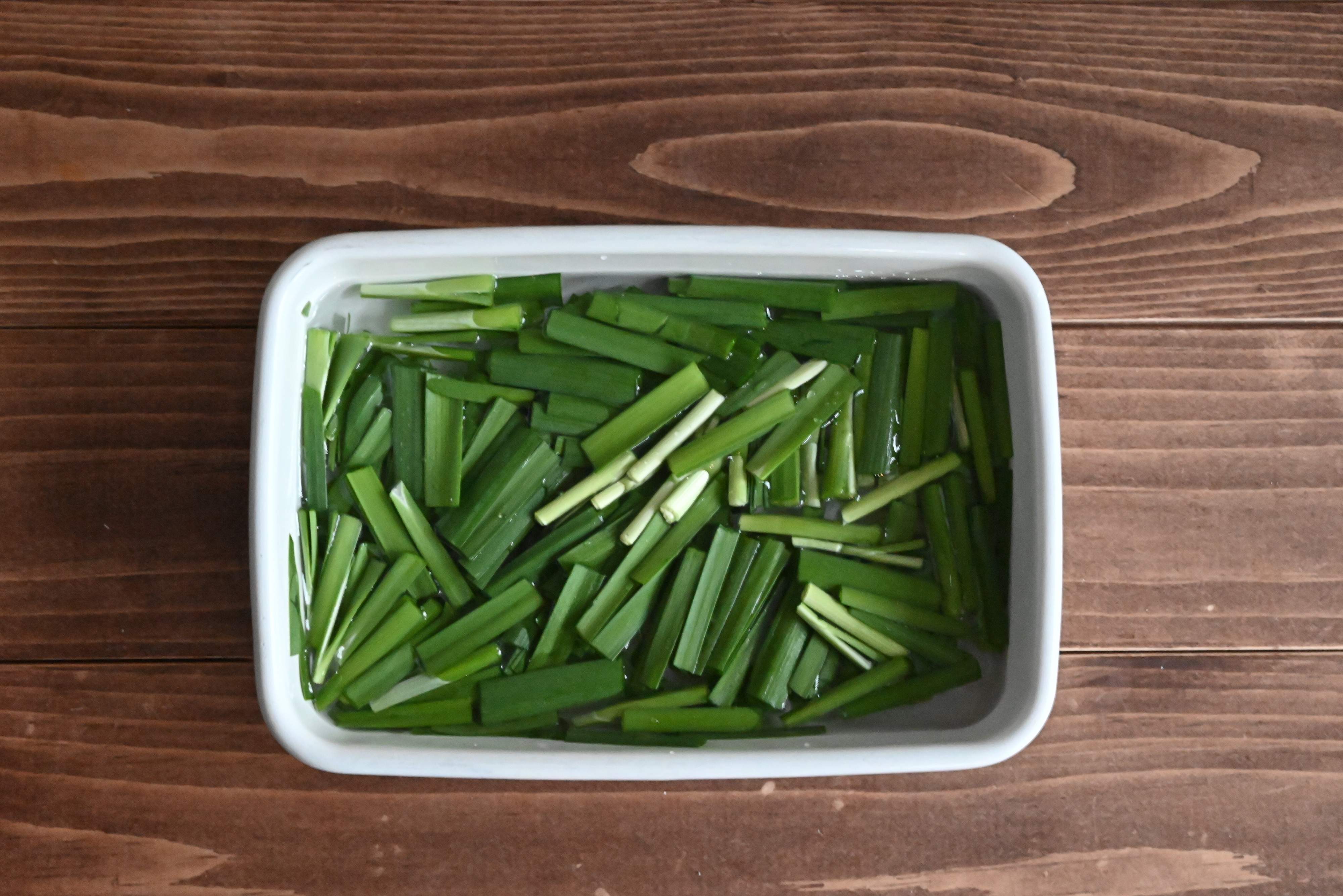 ニラを食べやすい大きさに切り、もやしと同様に密閉容器に水とともに入れて冷蔵庫で保管しましょう。