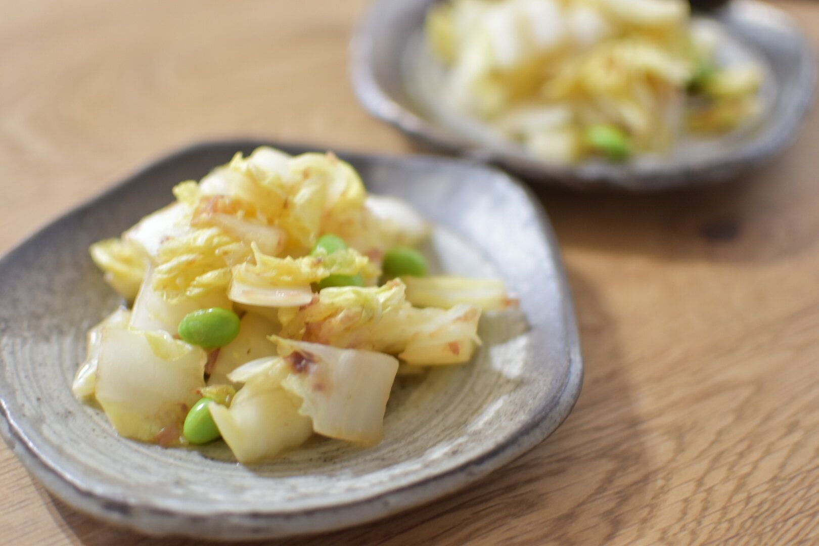 1 白菜は食べやすいサイズにカットし、耐熱容器に入れる。ふんわりとラップをし600Wで約2分加熱して取り出す。