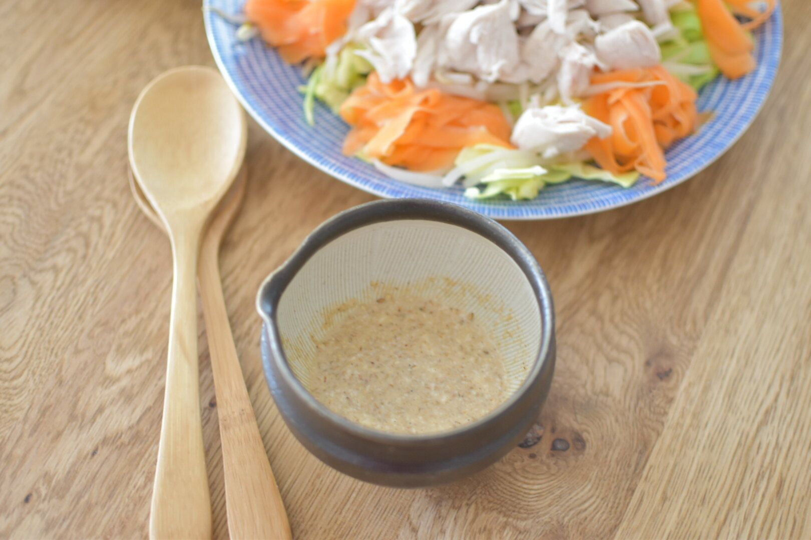 バンバンジーに欠かせない”ごまダレ”も冷蔵庫に常備している調味料でささっとつくります。