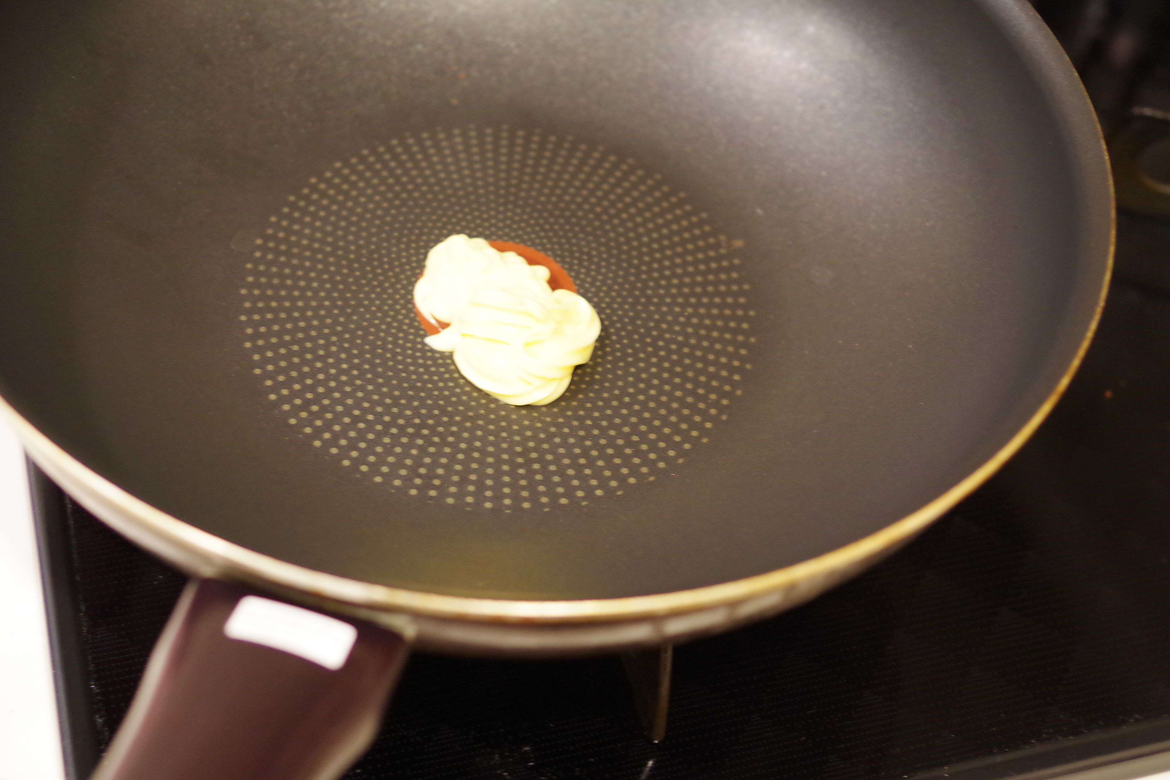 フライパンにマヨネーズを入れる