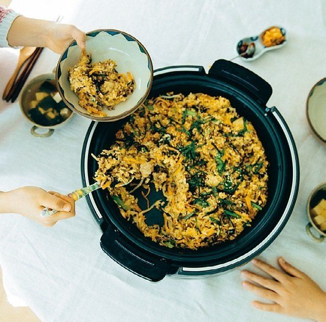 キムチと焼き肉のたれがあれば、何を入れてもピビンパに仕上げてくれる包容力。ホットプレートなら用意も片づけもラク♪ 家族にも大ウケです(西野奈美さん)
