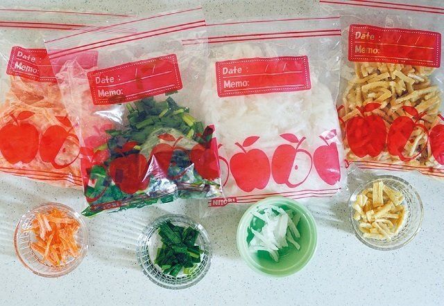 作り置きは無理でも、食材を切って種類別に保存袋に入れて冷凍するだけで、炒めものや汁ものにすぐに使え、疲れて外食、も減りました(トマさん)