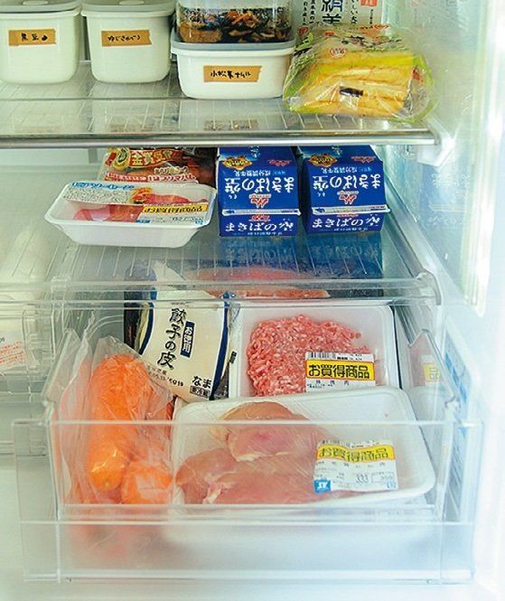 肉や魚は使う順番に手前から並べてチルド室に収納。行方不明にならず、計画的に使い切れます(中野めぐみさん)