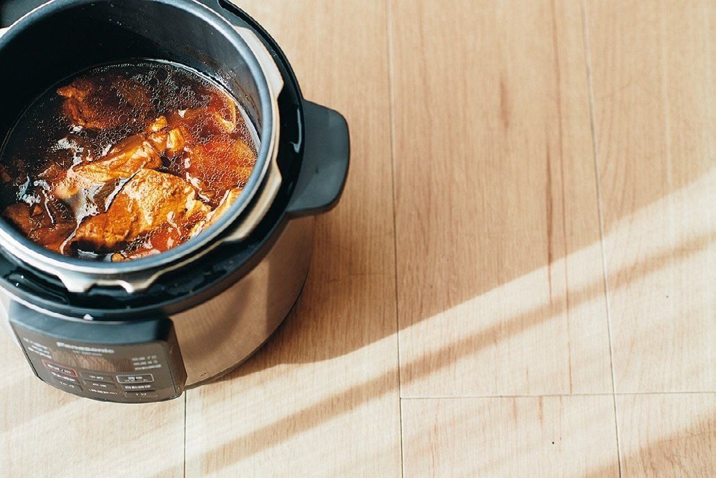 スイッチを入れたら、あとはほったらかしで料理できるパナソニックの電気圧力鍋が大活躍。「煮豚やカレーが短時間で作れて、手が空いた時間で洗濯物を片づけたり、副菜を作ったりできて助かってます」。