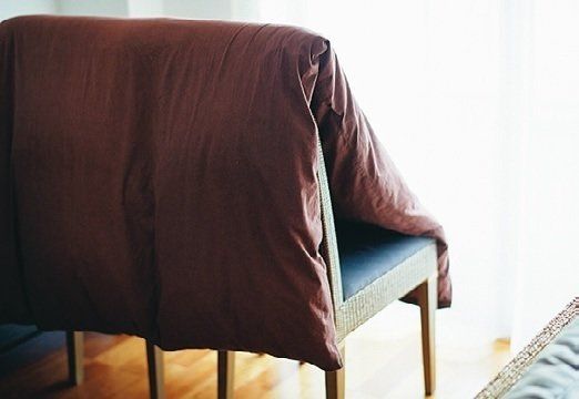 ふとんは窓越しの光に当てるだけで、湿気をとばす効果が。窓際にいすを2脚並べ、その上にふとんを掛ければOK。晴れの日に1枚ずつ干すペースをつくりましょう。花粉の時季にも安心。