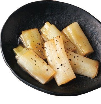 フライパンにバター20gを溶かし、ねぎ2本を長さ4~5cmに切って入れてさっと炒める。砂糖小1、酒1/2カップをふって混ぜ、ふたをして柔らかくなるまで10分ほど弱火で酒蒸しにする。しょうゆ大1/2、レモンの絞り汁小1をふって水分がとぶまで中火で炒める。器に盛り、粗びき黒こしょう適量をふる。